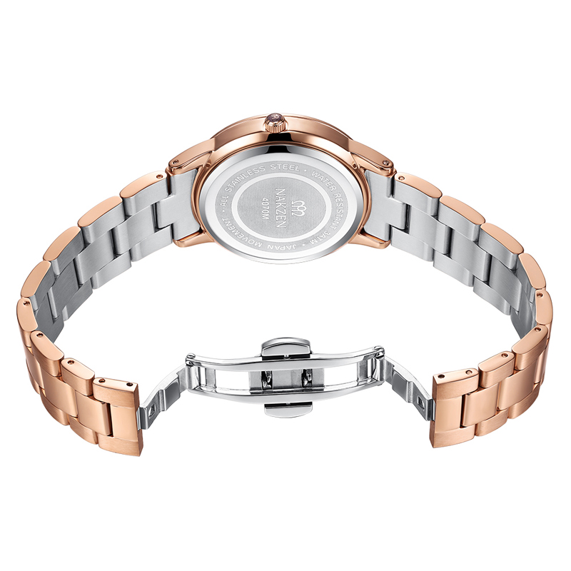 Đồng hồ sang trọng với khung viền và dây đeo của đồng hồ đều được làm từ thép không gỉ bền bỉ theo thời gian.