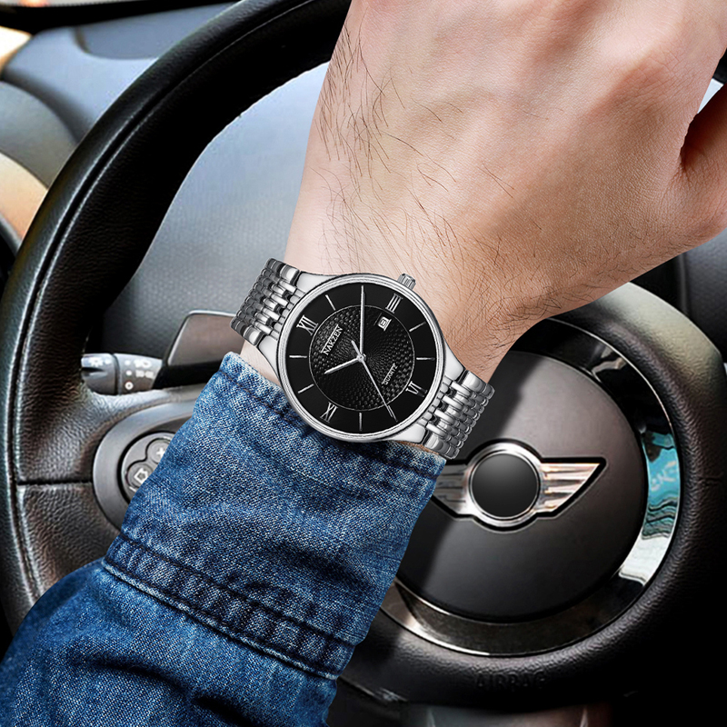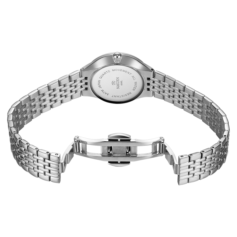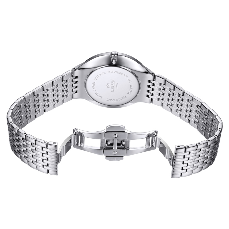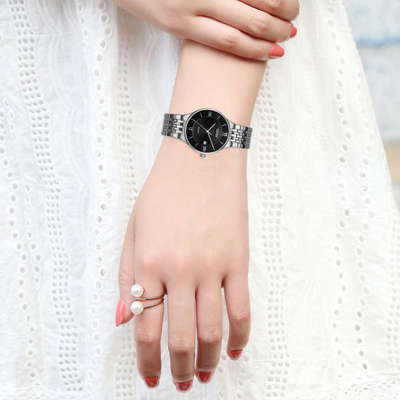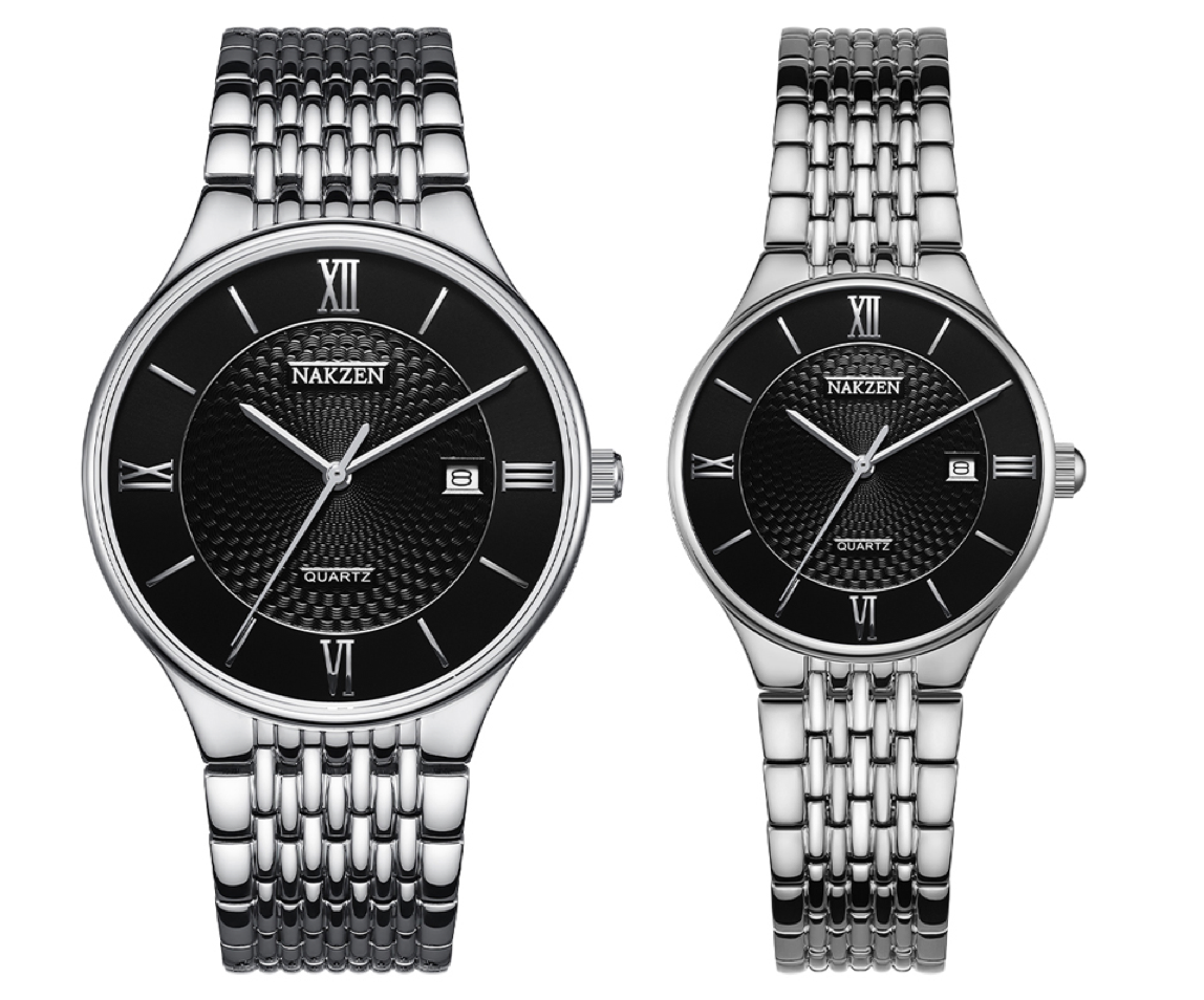 Đồng hồ đôi sang trọng với khung viền và dây đeo của đồng hồ đều được làm từ thép không gỉ bền bỉ theo thời gian.